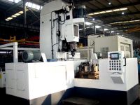 主減速器殼三軸鏜孔車端面機床,本機床是為粗加工、半精加工主減速器殼三孔及車削主減速器殼主錐端面而設計的專用機床。本機床采用立臥復合式三面結(jié)構(gòu),左右端各布滑臺和鏜頭,用于兩端孔的加工。立頭采用西德標準的DSS系列雙向刀盤鏜車頭,用于主錐端面孔加工,鏜車頭主電機采用變頻調(diào)速,以滿足鏜大小孔時切削速度的變化。中間采用數(shù)控滑臺,滑臺上安裝液壓夾具,以適應不同品種的偏置距。