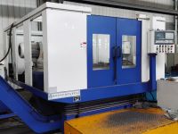 火車鉤尾框承載面加工專機,本機床為臥式單面布置,前面數(shù)控移動工作臺上安裝有回轉(zhuǎn)夾具,后面數(shù)控移動工作臺上配有專用雙軸銑削動力頭。夾具具有自動回轉(zhuǎn)及回轉(zhuǎn)到位后自動鎖緊功能,回轉(zhuǎn)角度由固定擋鐵控制,更換品種時需更換擋鐵塊。本機床主要用于13B、17型、力拓40T鉤尾框承載面的銑削加工,生產(chǎn)節(jié)拍:4分鐘/件。工件以底面、側(cè)面及尾部定位,液壓油缸夾緊。人工吊裝上下料,一次一件,液壓夾緊,數(shù)控系統(tǒng)控制,并配有獨立的液壓站、電氣柜、集中潤滑裝置。本機床加工剛性好,并適合多品種加工。